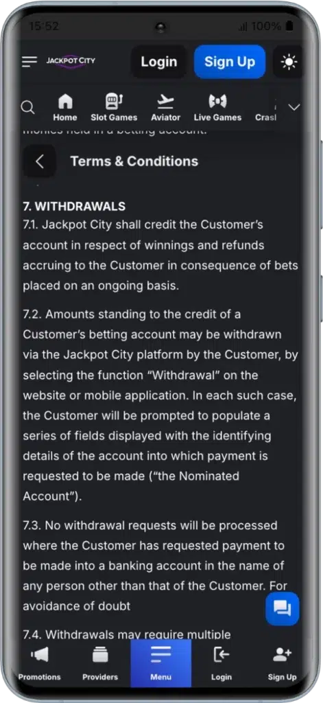Important: Jackpot City withdrawal funds will only be sent to your account or chosen method, never to third-party accounts.